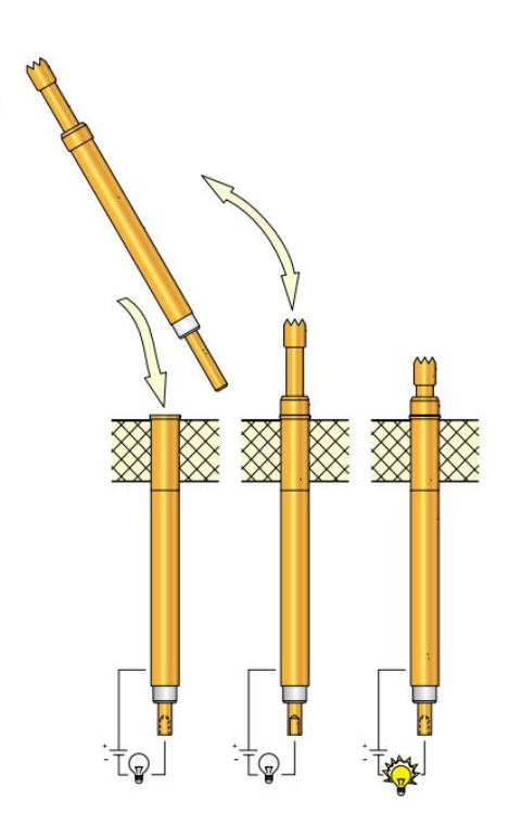 這是開關(guān)探針的基礎(chǔ)功能。通過探針的針尖(或接觸端)與被測對象(如PCB焊盤、芯片引腳、端子)的物理接觸,實現(xiàn)低阻抗導(dǎo)電通路,確保電流、電壓、高頻信號等參數(shù)在測試系統(tǒng)與被測器件(DUT)之間無失真?zhèn)鬏敗?/p>